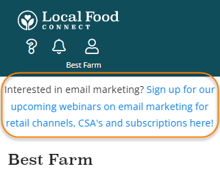 Banner messages from the makers of Local Food Connect now appear only on the Home page and will not take up screen space on the other pages where you need to manage products.