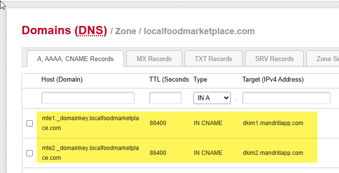 If you would like LFM Support to update the records on your behalf, please submit a ticket to support@Localfoodmarketplace.com with your domain host name and login information: