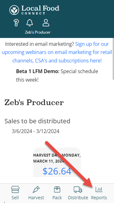 A reports icon now appears at the bottom/left of the page icon menu, allowing quick access to your sales reports page.