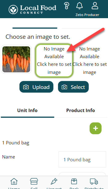 Products can now have up to 3 images which will display to customers on the food hub online store. On the product detail screen just click on the "No Image Available/Click here to set image" message to add an image to the Image 1, Image 2 or Image 3 slot. Then click Upload to upload a new image, or click Select to apply an image that you already have uploaded to the product. On the food hub online store customers can cycle through the three images. The image in slot 1 will be the default image on the storefront.